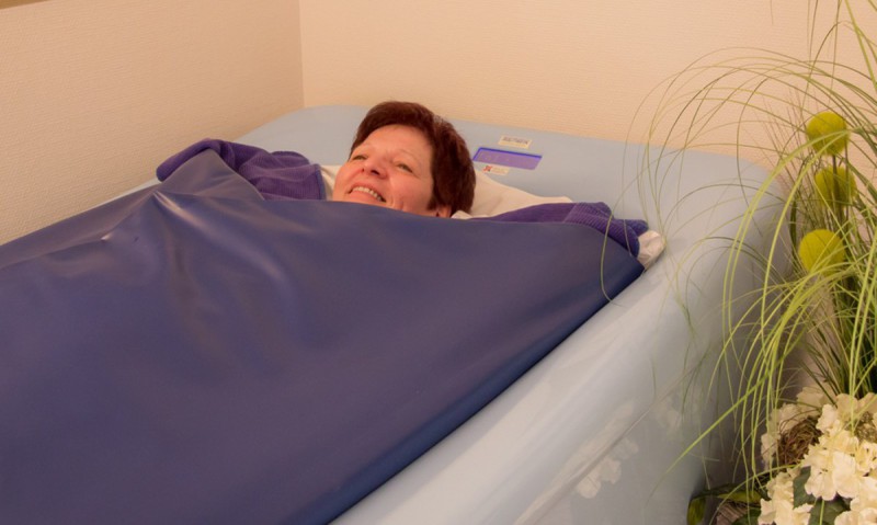 Wohlige Wärme, harmonische Schwingungen und sanfte Musik – eigentlich braucht es kaum mehr, um die Lebensgeister zu wecken und jegliche Erschöpfung zu bannen. Die Thermo-Spa-Liege gibt Ihnen das unbeschreibliche Gefühl von Schwerelosigkeit. Der Körper wird ganz leicht. Die Thermo-Spa-Liege ist für alle Arten mit verschiedenen Aromaölen, Jod-Sole oder Fango geeignet. Sie legen sich auf die gepolsterte Liege und werden in eine weiche Folie eingepackt, in der sich die Aromastoffe oder Moorpackungen voll entfalten können. Ohne direkten Wasserkontakt empfinden Sie ein Gefühl der Schwerelosigkeit. Die Wärme fördert die Durchblutung und öffnet die Poren. Die Wirkstoffe werden so optimal von der Haut aufgenommen. Dazu verwöhnt Musik die Ohren, Klangwellen massieren den Körper. Das gesamte Wasser der Liege wird in zarte Schwingungen versetzt — so können die Schallwellen gehört und zugleich gefühlt werden.