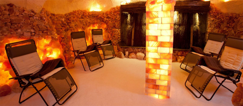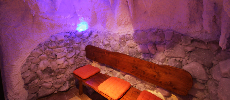 Auf dem Boden liegt eine dicke Schicht Meersalz aus dem Toten Meer. Das Salz sorgt auf natürliche Weise dafür, dass in der Salzgrotte eine mit Salzverbindungen gesättigte und ionisierte Luft entsteht, die eine günstige Wirkung auf viele Organe und Körperfunktionen ausüben kann. Die Luftfeuchtigkeit von ca. 50% erleichtert die schnelle Aufnahme der salzigen Luft bei angenehmen 19-20 Grad Celsius Raumtemperatur. Ein 45-minütiger Aufenthalt in der Grotte wirkt wie ein Tag am Meer.
