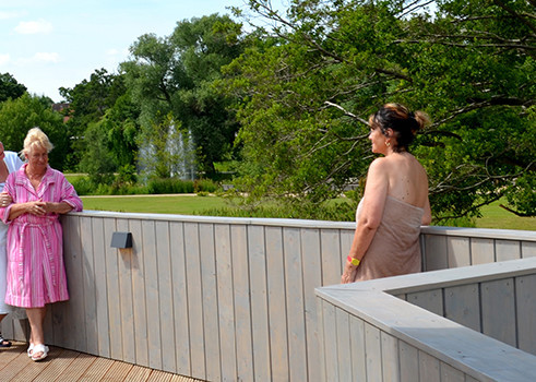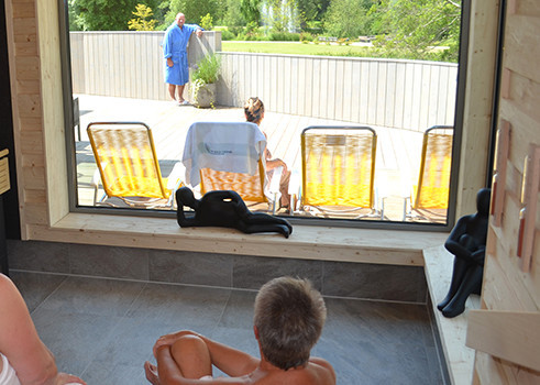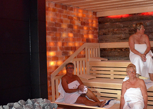In der Salzsauna findet neben klassischen Aufgüssen auch ein "Regenaufguß" statt. Dabei wird das Wasser über den heißen Ofensteinen speziell verteilt. Hierdurch entsteht ein gefächerter Guss ähnlich einem Landregen. Das Wasser verteilt sich dabei gleichmäßig über eine größere Fläche und der aufsteigende Dampf verspricht ein heißes Aufgusserlebnis.